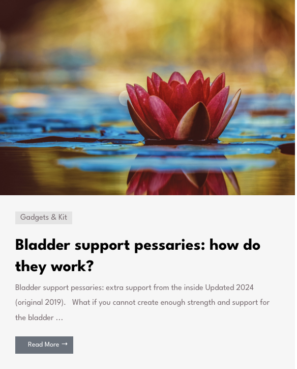 If you didn’t know about all of these you are not alone! Please be assured that these internal devices are not scary (up close) or nearly as big as you think. And they can be LIFE CHANGING. Many many women get great support, comfort and return to their activities from the use of these nifty gadgets. If you need help do get in touch to learn more.